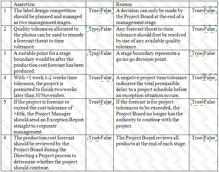 It is now 05 October and the prepared calendar pack must be delivered to the print company by 30 November, to enable printing and distribution of the calendar in time for Christmas. The cost of the activities to develop the specialist products and the cost of the project management activities are estimated to be £20,000. There is a project time tolerance of +1 week /-2 weeks and a project cost tolerance of +£6,000 / -£6,000. A change budget of £500 has been allocated but there is no risk budget.