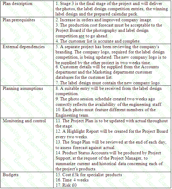 Using the Project Scenario and the Extract from Stage Plan for stage 3 provided as additional intonation for this question in the Scenario Booklet, answer the following 5 questions.