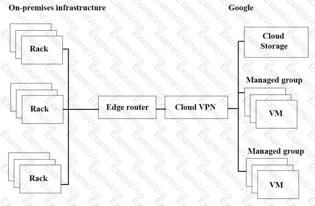 The migration of JencoMart’s application to Google Cloud Platform (GCP) is progressing too slowly. The infrastructure is shown in the diagram. You want to maximize throughput. What are three potential bottlenecks? (Choose 3 answers.)