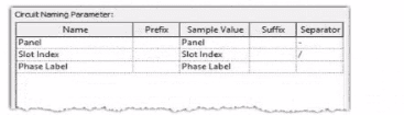 “The circuit numbering format is controlled by the Electrical Settings > Circuit Naming template. The default scheme combines panel name, circuit number, and phase label, using the separators defined by the user.”