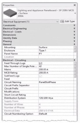 The panelboard properties show that its Circuit Naming method is set to PanelSlotPhase, which means that Revit will generate circuit numbers using the following structure: