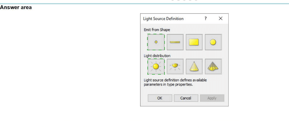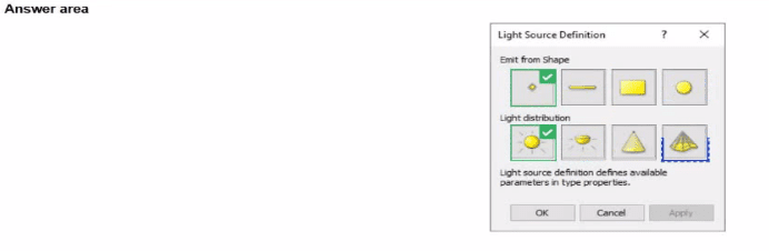 In Autodesk Revit’s Family Editor, when defining a light source for an electrical lighting fixture family, the Light Source Definition dialog controls how the light behaves visually and analytically. When incorporating an IES photometric web file (.ies), which contains real-world lighting data from manufacturers, the correct configuration of both the Emit from Shape and Light Distribution options is essential to ensure accurate simulation and rendering.