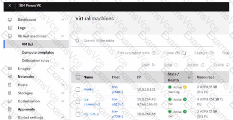In the figure you see MyVM with a health state of "Warning" What is a common reason for that?
