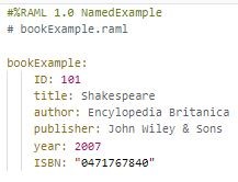 A company has defined two RAML fragments, Book Data Type and Book Example to be used in APIs.