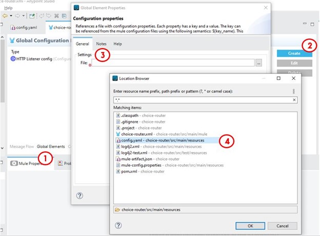 3) Go To Project > Global Element > Create > General >select the configuration.yaml file create in step- 2)