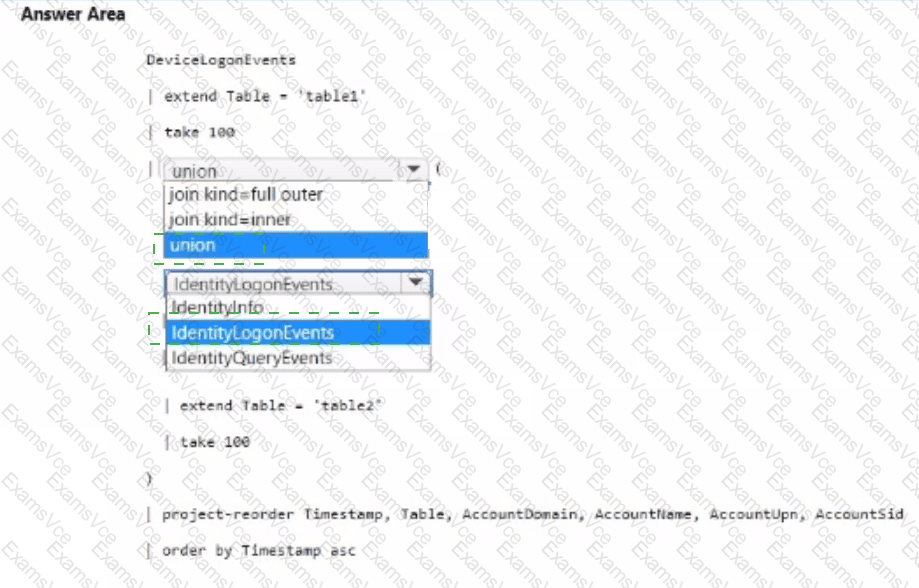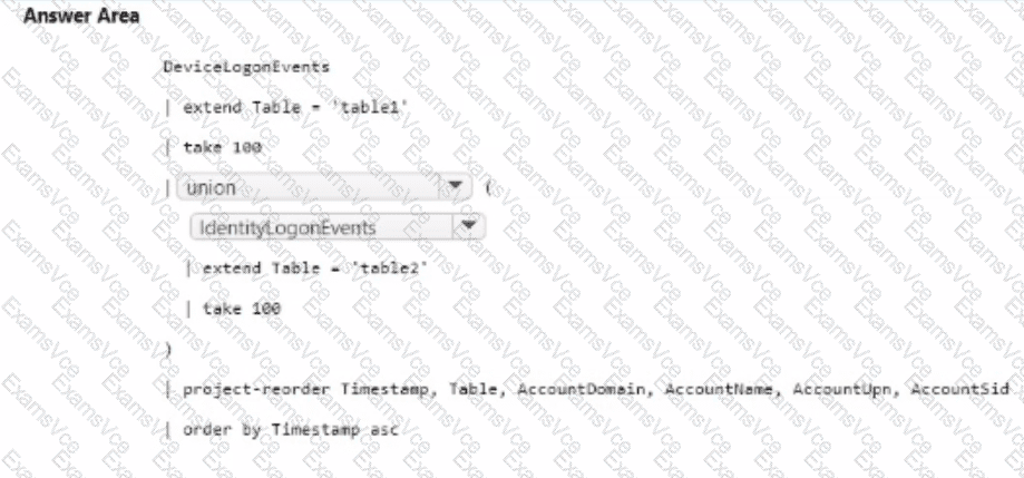 How should you complete The KQL query? To answer, select the appropriate options in the answer area.
