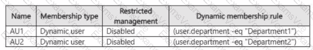 You have a Microsoft 365 tenant that contains the administrative units shown in the following table.