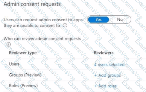 You configure the Admin consent requests settings as shown in the following exhibit.