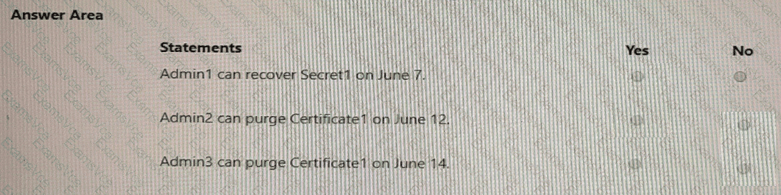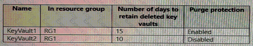 You have an Azure subscription that contains the key vaults shown in the following table.