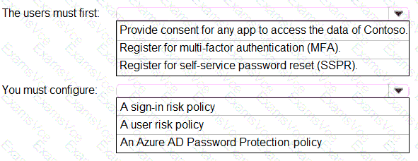 “To enforce a password change when a user’s identity risk is high, the user must be registered for MFA, and a user risk policy must be configured to require password change.”