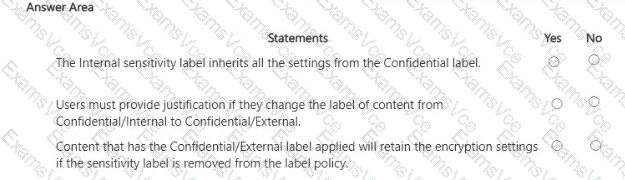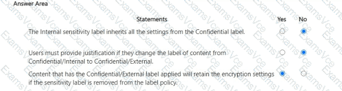 Statement 1: The Internal sensitivity label inherits all the settings from the Confidential label.