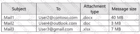 For which emails will the attachments be encrypted? To answer, select the appropriate options in the answer area.
