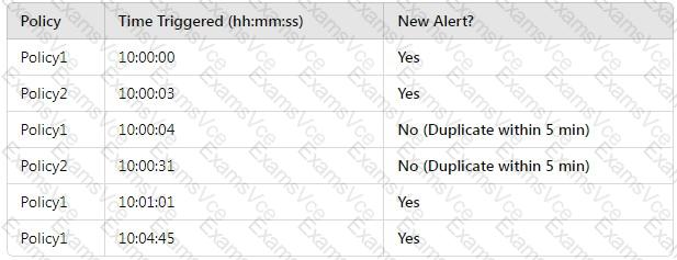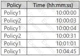 You create two alert policies named Policy1 and Policy2 that will be triggered at the times shown in the following table.