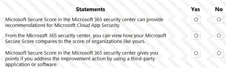 For each of the following statements, select Yes if the statement is true. Otherwise, select No.