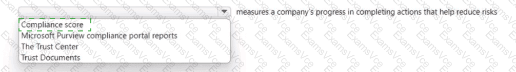 By contrast, Microsoft Purview compliance portal reports provide reporting and insights (for example, DLP, Insider Risk, Audit) but do not calculate a unified risk-reduction progress metric. The Trust Center is Microsoft’s public site for transparency about security, privacy, and compliance commitments, and Trust Documents (auditor reports, certifications, and white papers) supply evidence and reference materials. Neither of these provide an in-product, points-based measure of progress—Compliance score does.