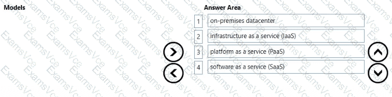 in which order should you list the service models from the most customer responsibility (on the top) to the least customer responsibility (on the bottom)? To answer, move all models from the list of models to the answer area and arrange them in the correct order.