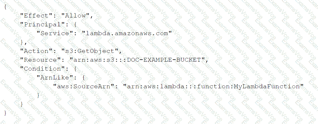 D. Changing the Resource element to the Lambda function ARN would not make sense, because it would mean that the policy applies to the Lambda function itself, not the bucket or its objects. The Principal element should not be changed to s3.amazonaws.com, because it would grant access to any AWS service that uses S3, not just Lambda.