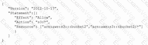 An AWS account includes two S3 buckets: bucket1 and bucket2. The bucket2 does not have a policy defined, but bucket1 has the following bucket policy: