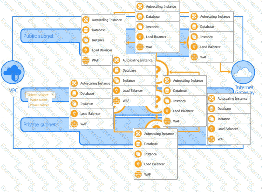 Public Subnet: WAF, Load Balancer, Autoscaling group.