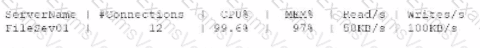 A systems administrator receives an alert that a company's internal file server is very slow and is only working intermittently. The systems administrator reviews the server management software and finds the following information about the server: