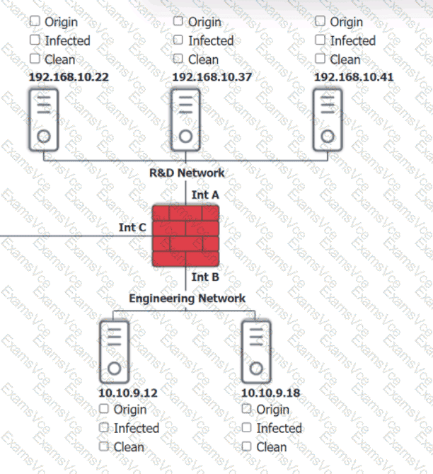 Click on each host and firewall. Review all logs to determine which host originated the Infecton and then deny each remaining hosts clean or infected.