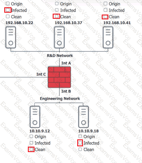 Click on each host and firewall. Review all logs to determine which host originated the Infecton and then deny each remaining hosts clean or infected.