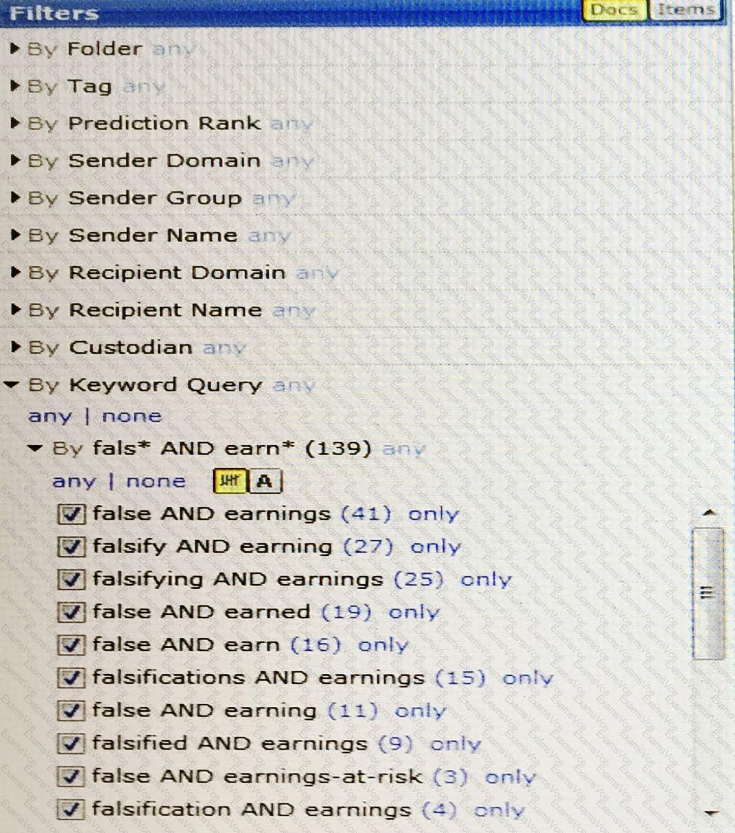 Which category in Exhibit one enables the feature to populate the keyword Query filter shown in Exhibit two?