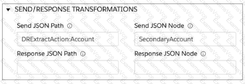You have configured an Integration Procedure element with SEND/RESPONSE TRANSFORMATIONS as shown. Alternatively, how would you configure Additional Input to send exactly the same data? Assume that you check Send Only Additional Input.