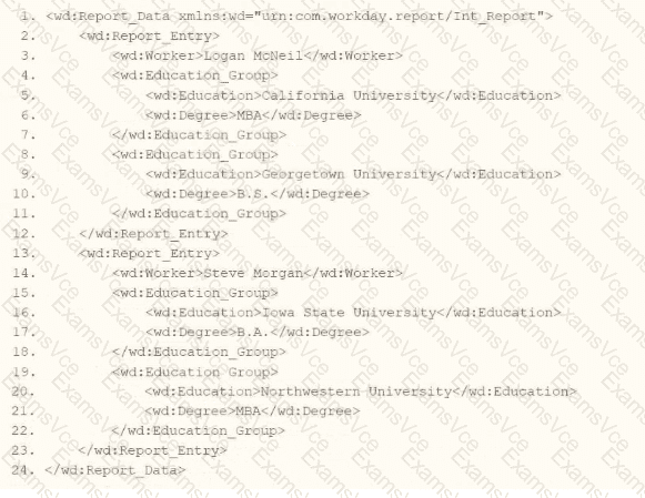 Workday EIB and Web Services Guide: Chapter on "XML and XSLT for Report Data" – Explains the structure of Workday XML (e.g., wd:Education_Group, wd:Degree) and how to use XPath to navigate and filter data.